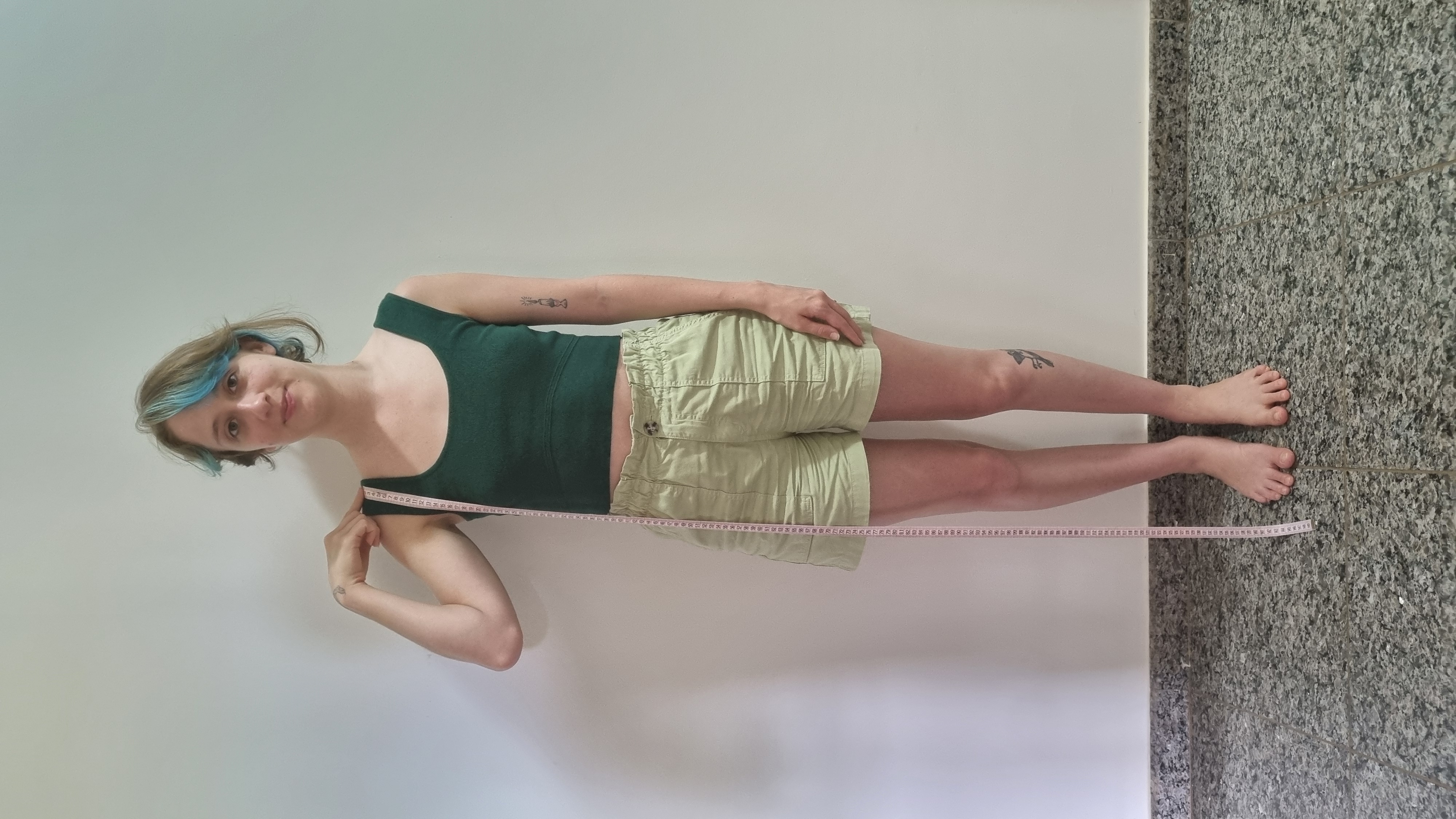 Para conferir se a altura vai ficar certa (no caso de capas e mantos longos) é só medir a altura do ombro até o pé: